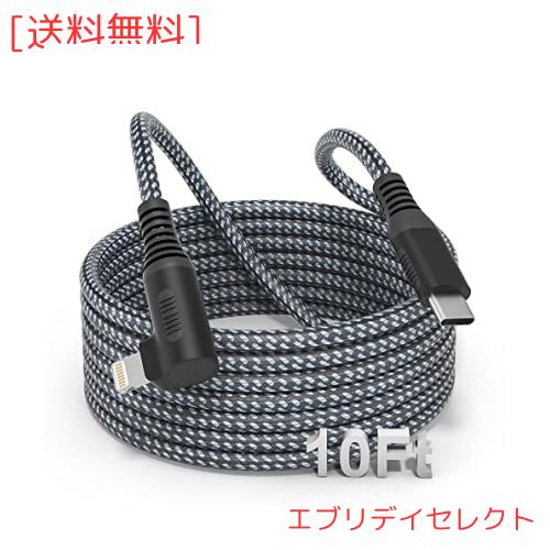 USB C ライトニング ケーブル L字【MFi認証/超高耐久】3M ナイロン編み ライトニング ケーブル Power Delivery 対応 3A急速充電 iPhone 1