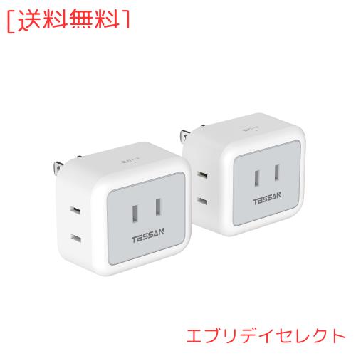 コンセントタップ TESSAN 3AC口 電源タップ 雷ガード コンセント 分岐 直挿しマルチタップ 蛸足コンセント コンパクト 2個セット