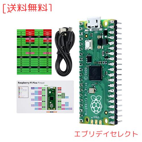 1 x Raspberry Pi Pico ボード (はんだ付け済みヘッダー付き) 1×USBケーブル 1 x ピン配置カード 2 セット x ピンアウト ステッカー