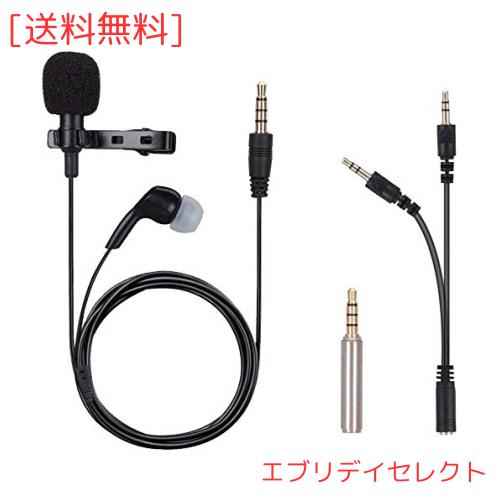 マイクロフォン iGOKU クリップマイク 外部マイク ピンマイク イヤホン付き 全指向性 カメラ/スマホ/PC用マイク カラオケ/録音/skype会話