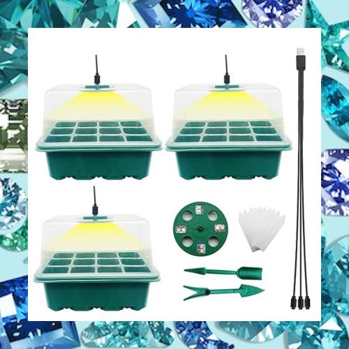 育苗ポット植物育成ライト付き 育苗トレイ 育苗箱 12穴 3個セット 高くする透明カバー 種子トレイ 発芽?育苗セット 種まきハウス 苗箱 種