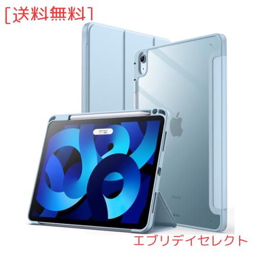 JEDirect iPad Air 5/4 ケース 10.9 インチ (第5/4世代、2022/2020モデル用) Pencil収納可能 透明バックカバー 薄型 スタンド 衝撃吸収