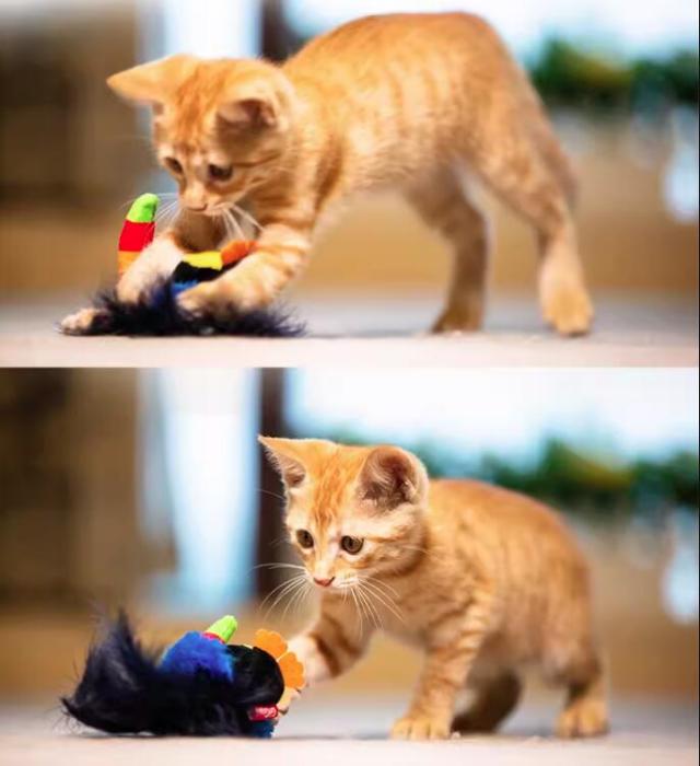 形や鳴き声で感覚に働きかけ、ネコちゃんの本能を刺激します!