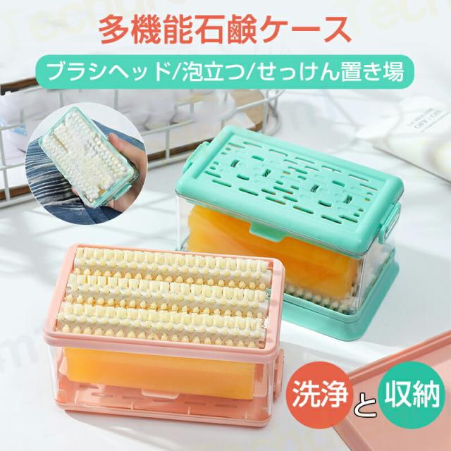 石鹸ケース ブラシ付き 蓋付き 泡立つ洗濯せっけんケース せっけん箱 せっけん 石鹸 石けんケース 水切り クリーニング 洗濯ブラシ せっけん置き場 石けん台 ケース