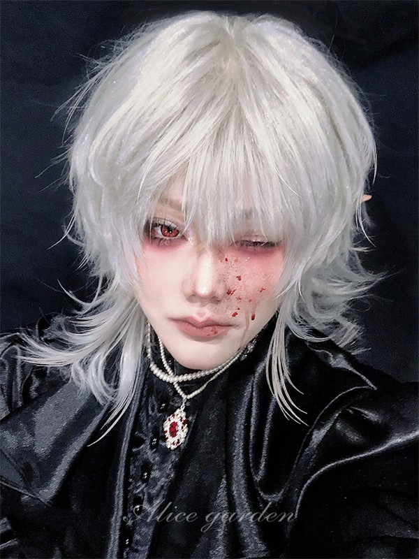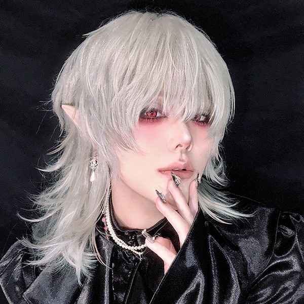 ウィッグ シルバー メンズ レディース かつら ショート ウルフ フルウィッグ 男装 男性 原宿 イケメン ハンサム 自然 小顔 耐熱 人気 ファッション イメチェン 男女兼用 短髪 ネット付き