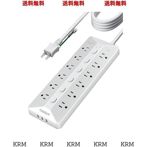 電源タップ スイッチ付き usb コンセント 延長コード 5m TESSAN 12個AC口 3個USBポート テーブルタップ 壁掛け マルチタップ oaタップ 幅