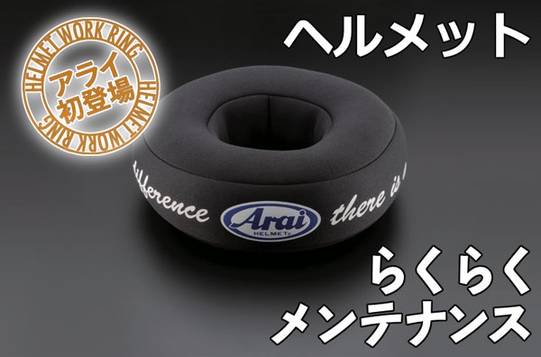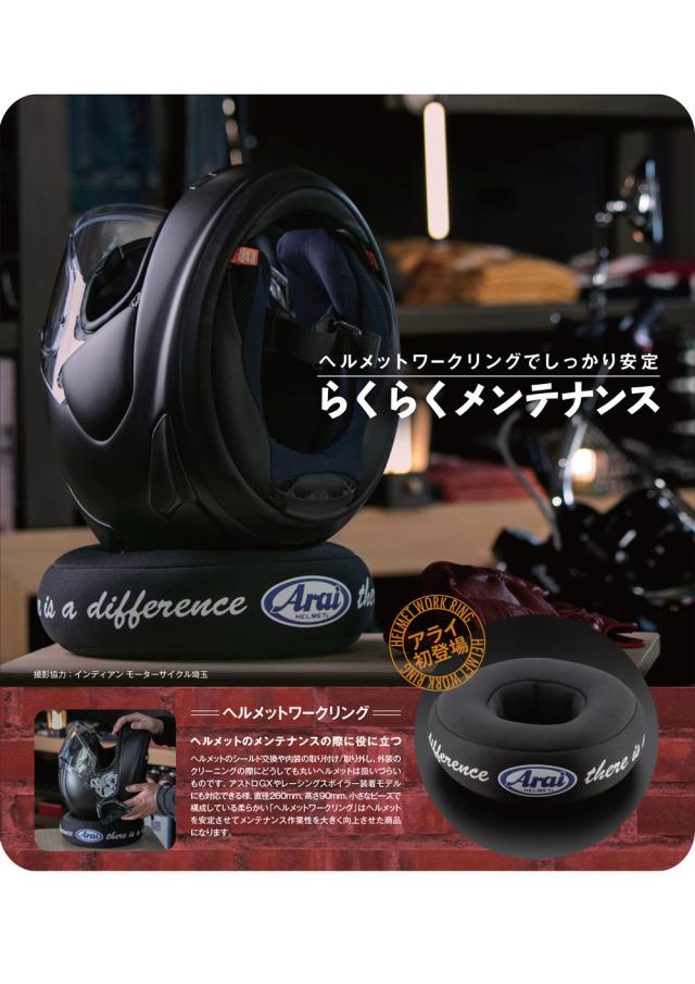 アストロGXやレーシングスポイラー装着モデルにも対応できる様、直径260mm、高さ90mm、小さなビーズで構成している柔らかい「ヘルメットワークリング」はヘルメットを安定させてメンテナンス作業性を大きく向上させた商品になります。