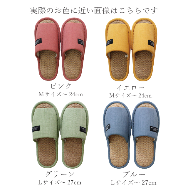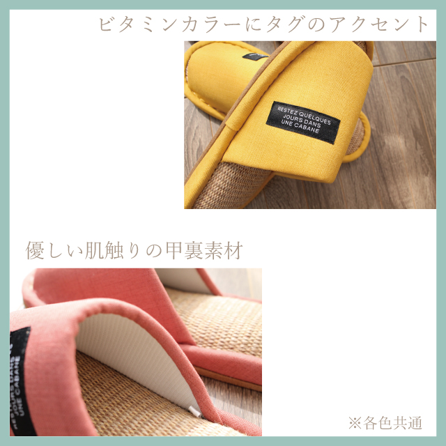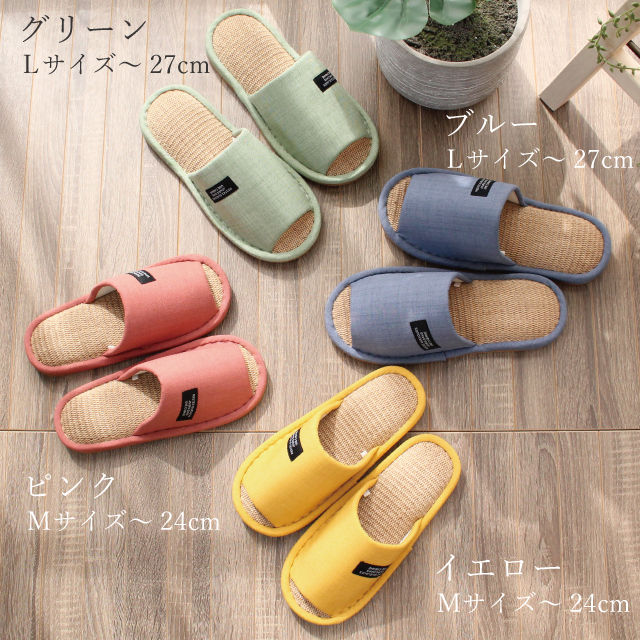 スリッパ 夏用 来客用 ビタミンカラー 洗える麻混インソール M L レディース メンズ 27cm 1足販売