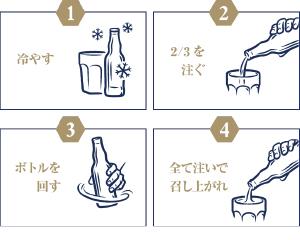 ![]() | 〜ヒューガルデンのおいしい飲み方〜 1 ヒューガルデンをしっかり冷やし、グラスを冷水ですすぐ 2 グラスを45度に傾け、グラスの上部に触らないようにしながら、ビールの2/3をゆっくりと注ぐ 3 グラスを真っ直ぐに戻し、ボトルの底の酵母を浮かせるように何度かグルグルと回してください 4 グラスを垂直に戻しながら、ボトルの残りを全てを注ぐ (※)1996年/2002年/2004年/2006年/2008に続く受賞 |