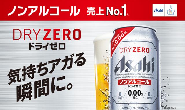 アサヒ ドライゼロは2012年2月の発売以来、ビールらしい味わいが好評で、ノンアルコールビールテイスト飲料市場において売上No.1(※)を達成。最もビールに近い味を目指したノンアルコールビールです。味にこだわりをもつビール類ユーザーが満足できるよう、“アルコール度数0.00%”でもビールならではの味わいとのどごしを再現できるよう独自の技術を開発しました。ビールを飲みたいけれど飲めなかった様々なシーンでも、ガツンとしたのどごしとキレで爽快な味わいが楽しめます。