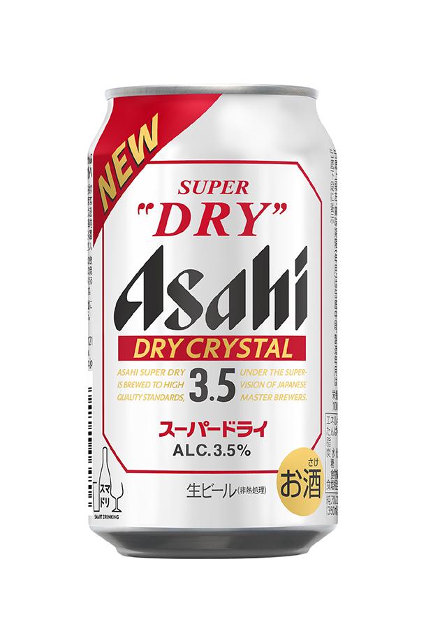 アサヒスーパードライ ドライクリスタルはアルコール分3.5%の「スーパードライ」。スーパードライの味の骨格やキレはそのままに、本格的なビールの飲みごたえをアルコール分3.5%で実現しました。新しい味わいを提案する、コクと透明感のある後味が特長です。