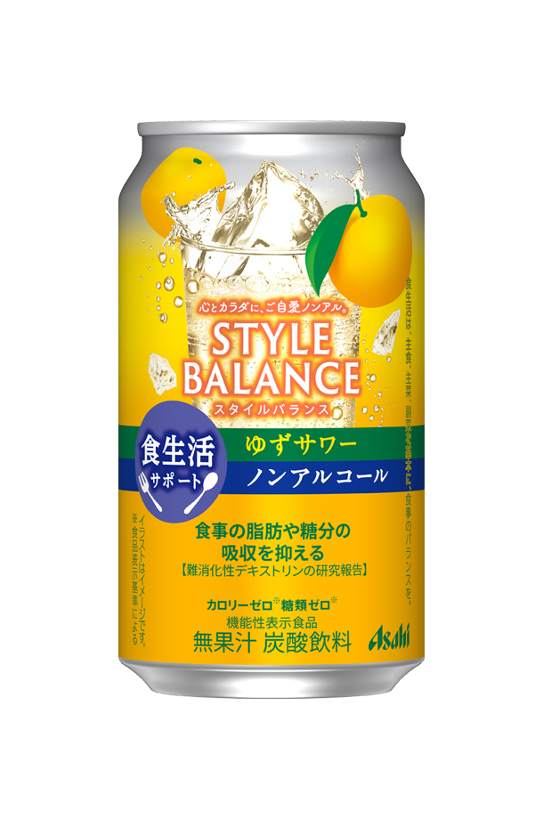 | 食事の脂肪や糖分の吸収を抑える スタイルバランス 食生活サポート ゆずサワー ノンアルコール アサヒ 機能性表示食品 カロリーゼロ(※) 糖類ゼロ(※) |