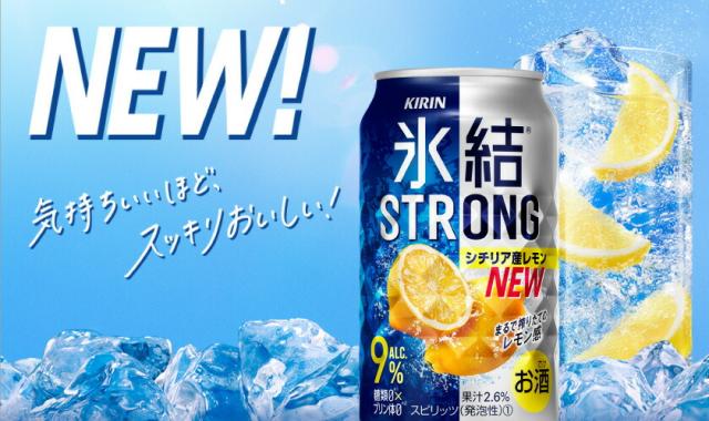 「キリン 氷結 ストロング」は、しっかりとした飲みごたえを楽しめるアルコール度数7〜9%のストロングチューハイ。