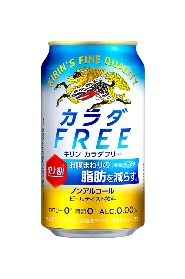 キリン カラダFREE(カラダフリー)は、史上初(※1)、お腹まわりの脂肪を減らすノンアルコール・ビールテイスト飲料です。