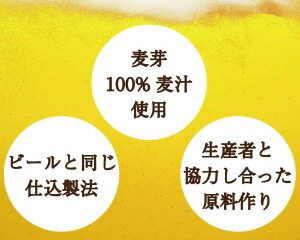 麦芽100%麦汁を使用し、「苦味」と「コク」が感じられるしっかりとした飲みごたえはそのままに、「酵母マイルド製法」により、ビールに近い味わいを実現しました。