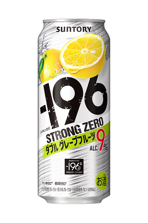 「−196 ストロングゼロ」シリーズは、強い果実感と爽快感で飲みごたえのある「−196(イチキューロク)」です。サントリー独自の「−196℃製法」で果実を凍結し、パウダー状に粉砕して原酒に浸漬することで、果実の味わいを引き出しました。アルコール度数が9%と高く、飲みごたえと果実感が特徴です。