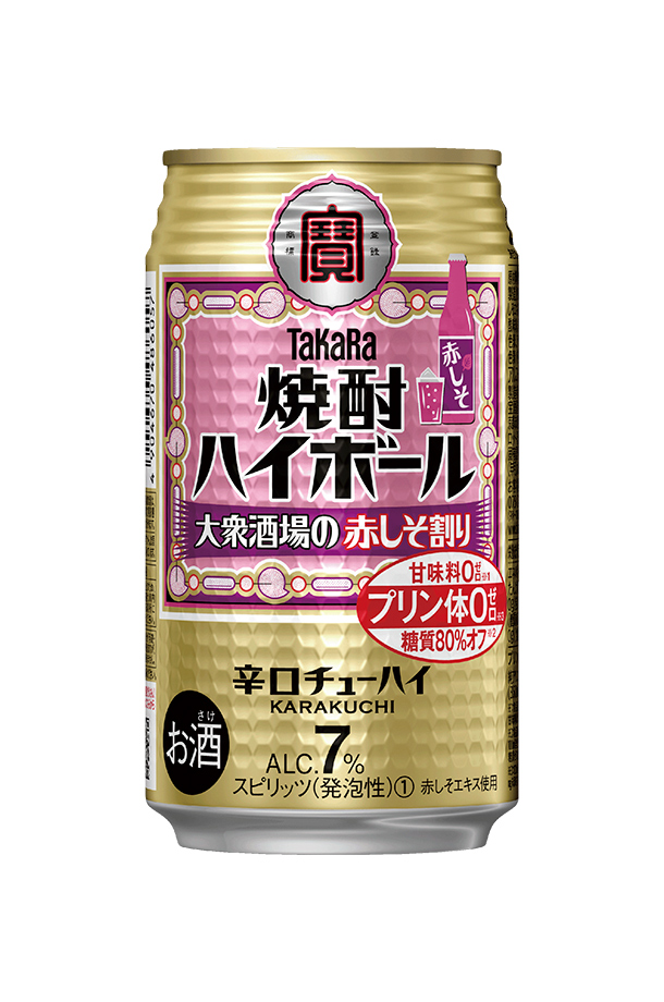| 下町の大衆酒場で愛される、あのうまさ。元祖焼酎ハイボールの味わいを追求した、飲みごたえ。 タカラ 焼酎ハイボール 大衆酒場の赤しそ割りは、大衆酒場で人気の「赤しそ割り」の味わいを参考に、焼酎ハイボールらしい爽やかな酸味と香りの辛口の味わいです。 プリン体ゼロ、糖質80%オフ、甘味料ゼロ(※)の、きれ味爽快な辛口チューハイ! (※)食品添加物としての甘味料(人工甘味料)は使用していません |