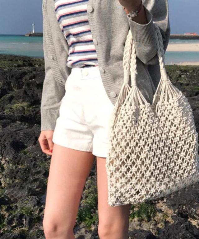 おしゃれな手編みバッグ。