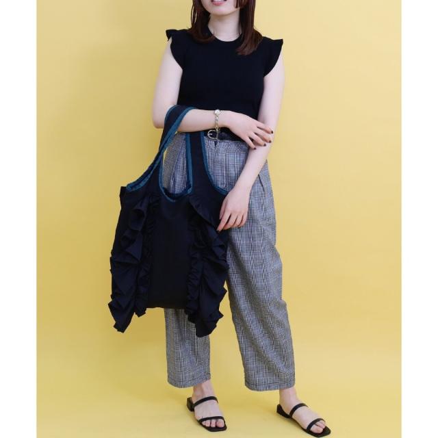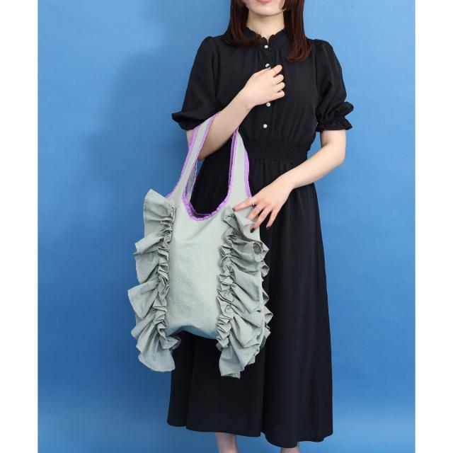 【SMIRNASLI サミールナスリ】配色 フリルトートバッグ A4対応