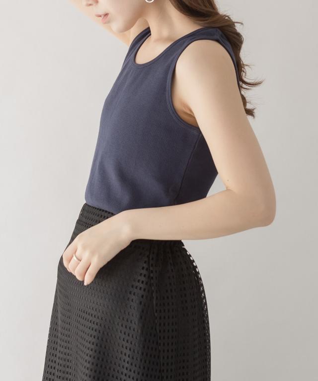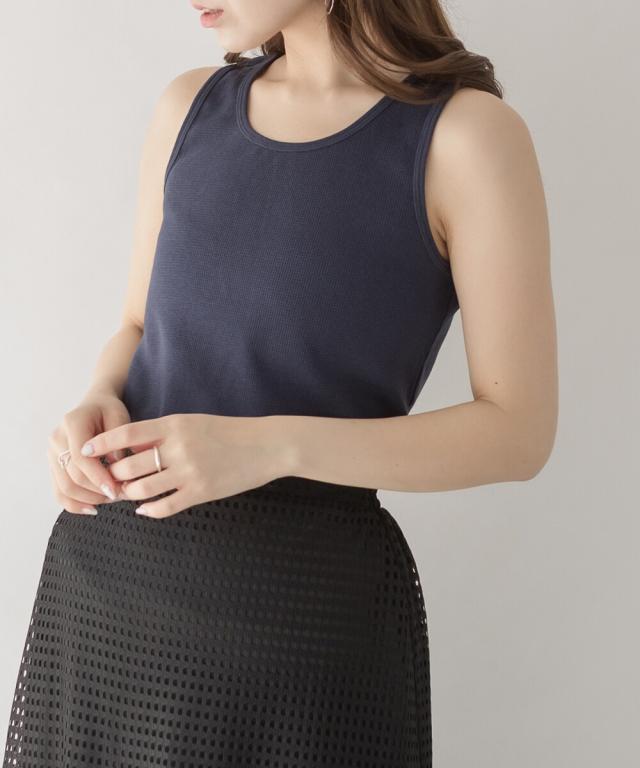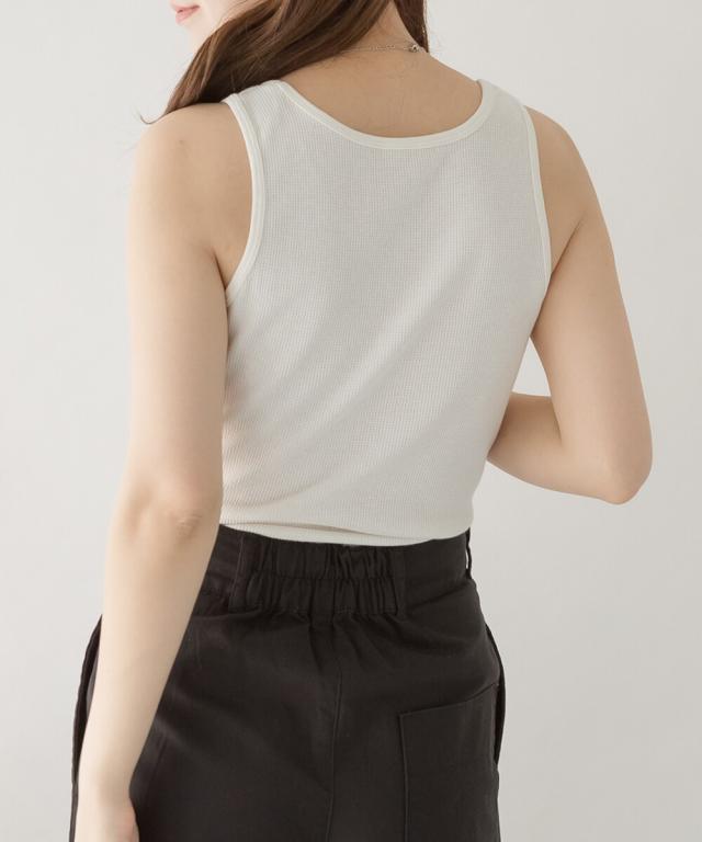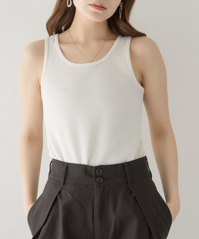 春夏には嬉しいコットン100%のワッフルタンクトップ。