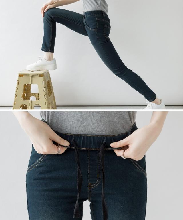 紐付きウエストゴムデニムパンツ