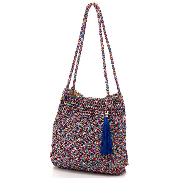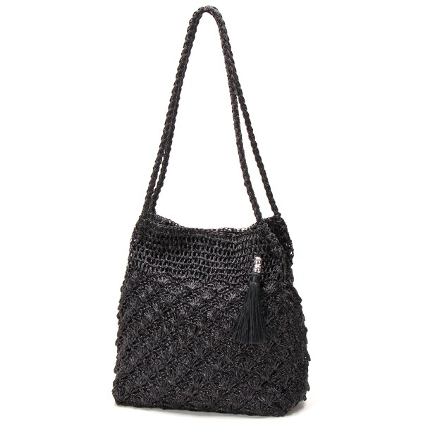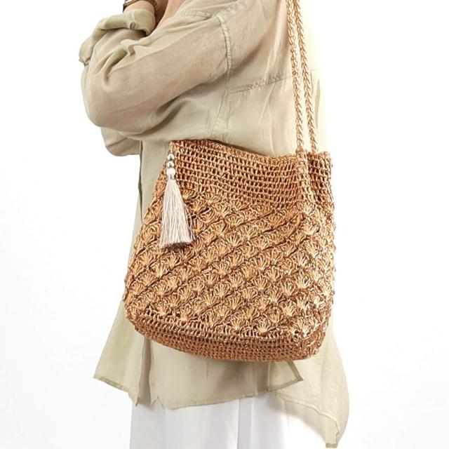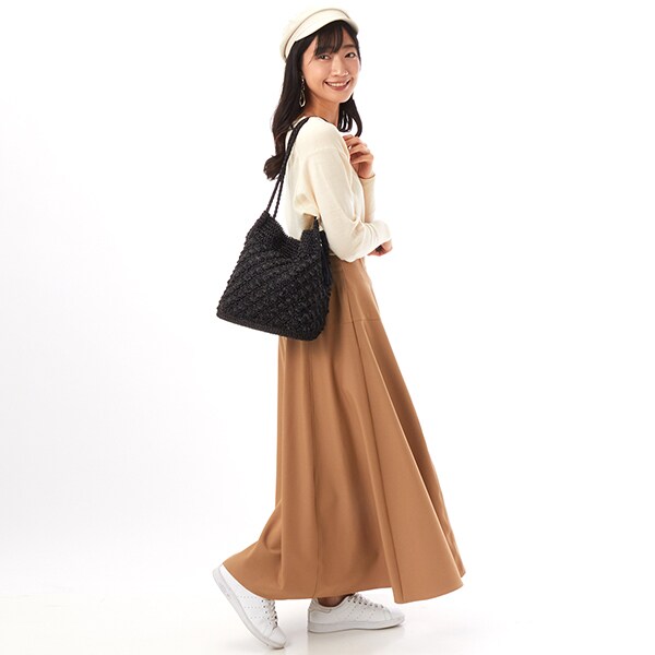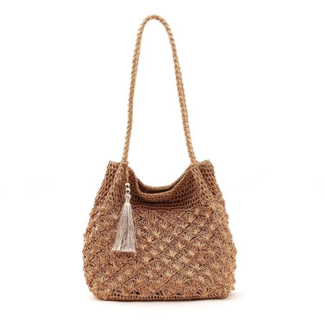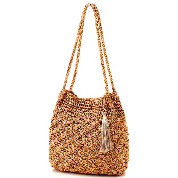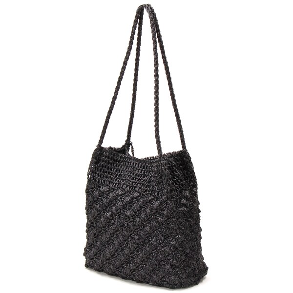 【COOCO クーコ】 メタリック 柄編み ロング ハンドル トートバッグ かごバッグ
