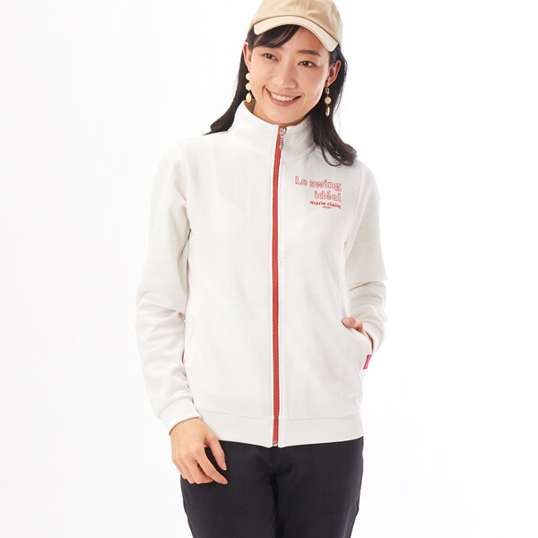 表面変化のあるワッフル素材は肌離れがよくさらっと着こなせて快適です。シンプルなデザインのブルゾンは普段着にもプレー時の寒暖対応にも活躍します。