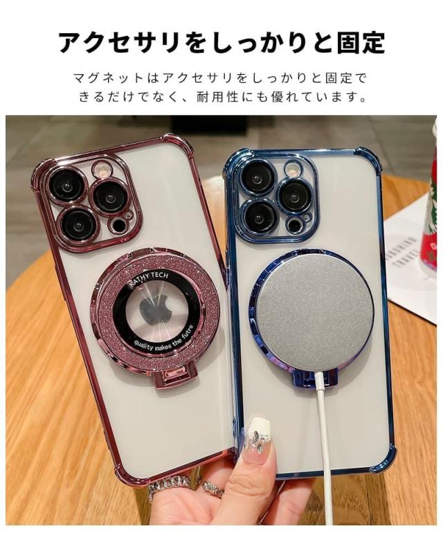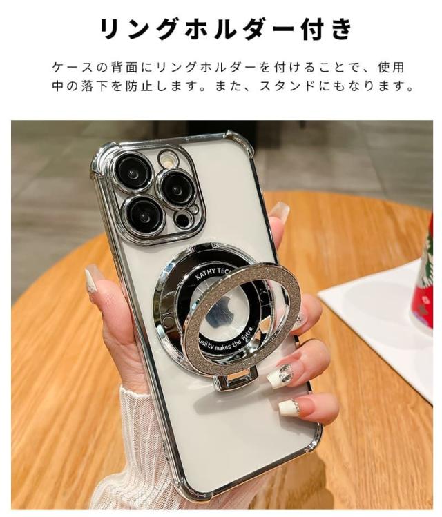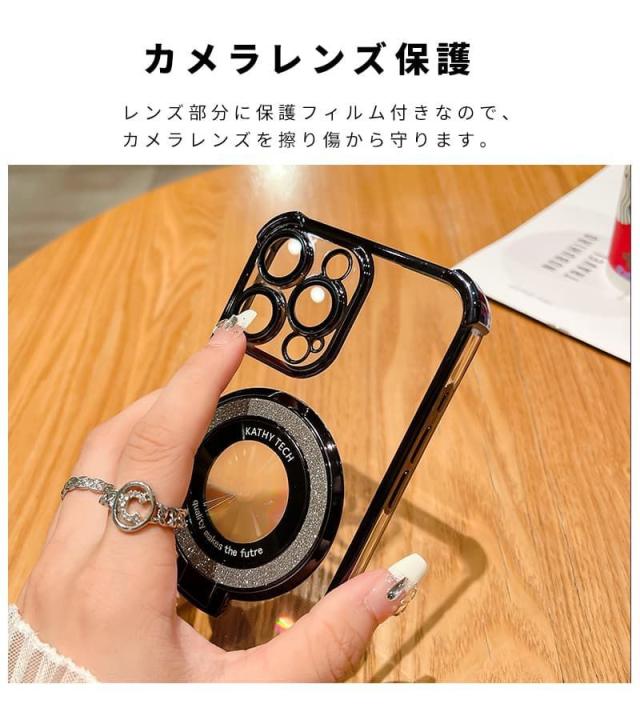 magsafe対応 iphone 15ケース 耐衝撃 キラキラ かわいい リング付き スマホケース iphone 14ケース iphone13 pro max ケース iphone12 プロケース iphone 15proケース 耐衝撃 iphone 14proケース 韓国 マグネット ワイヤレス充電 スタンド機能 キラキラ