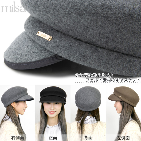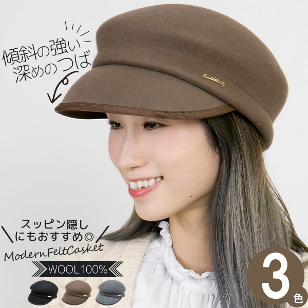 キャスケット レディース フェルト 帽子 秋冬 キャップ サイズ調節 / Modernフェルトキャスケット