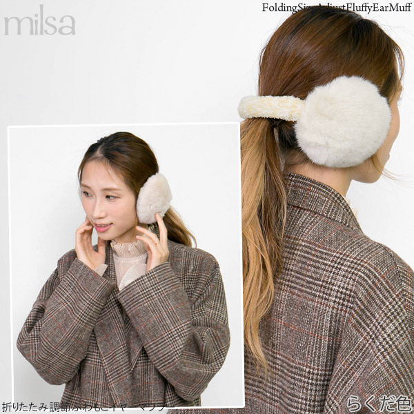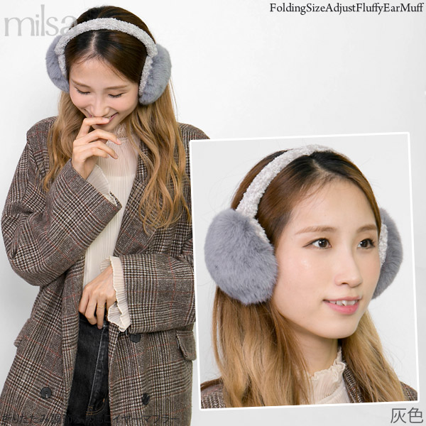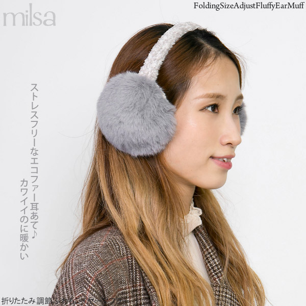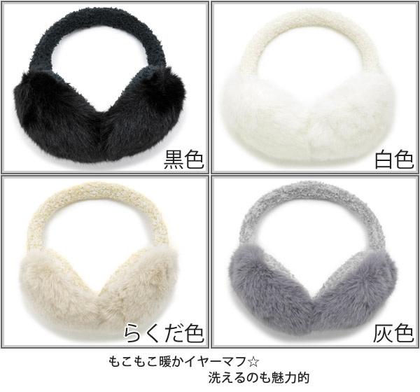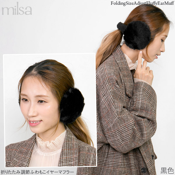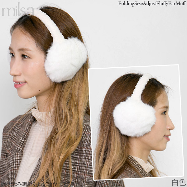 イヤーマフ 耳あて レディース ファー 洗える サイズ調節 / 折りたたみ調節ふわもこイヤーマフラー