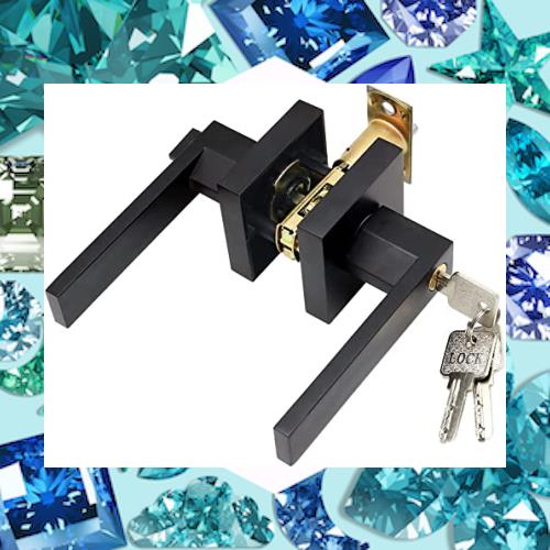 堅塁金物 ドアノブ 鍵付き 室内 浴室 レバーハンドル YQ-ET3 (平方黒ET003-3鍵付き)