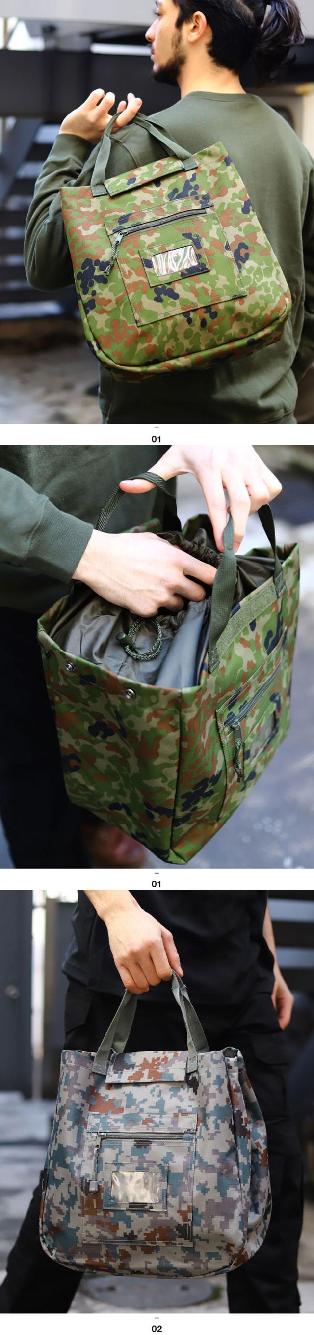 バイヤー推薦!多目的で使えるトートバッグ自衛隊の官品納入業者として、自衛隊ファンやコレクターからも定評がある本格自衛隊グッズメーカーから、陸自で正式採用されている現行の迷彩柄を忠実に再現したバッグ(PX売店品)が入荷!