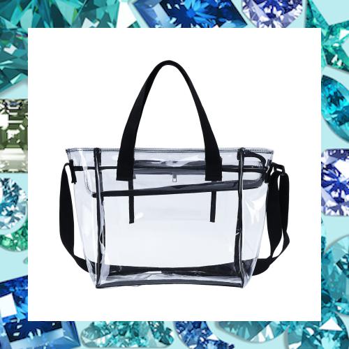【仕様】透明バッグ、横30cm高さ30cm幅15cm、重量約0.35kg。内部のジッパーポケット×1 横19cm高さ17cm。手提げベルト、ショルダーベルト付き、手提げバッグ/ショルダーバッグとして利用可能です。ショルダー用ベルトの長さ150cm幅3cm、長さを自由に調整できます。