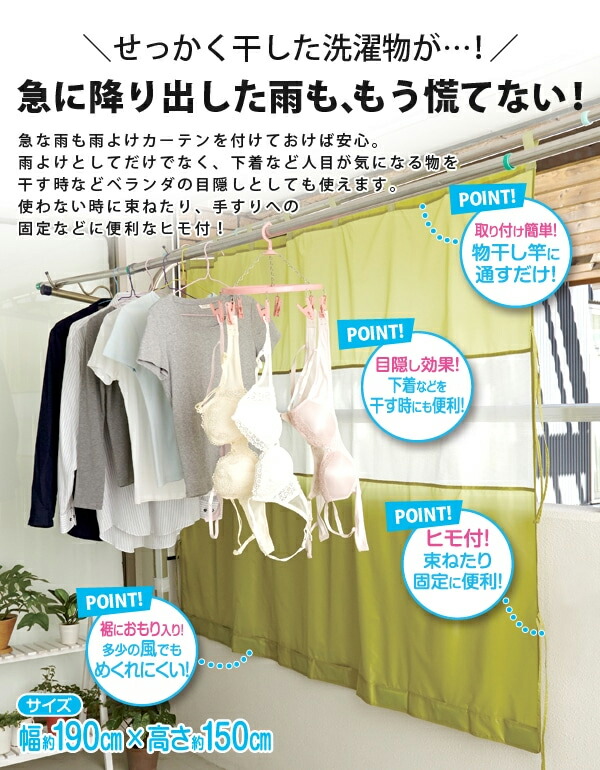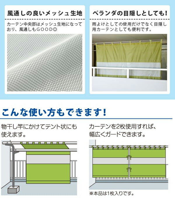 【メール便送料無料】アイメディア 風を通す雨よけベランダカーテン 190cm×150cm 目隠し ゲリラ豪雨 物干し竿