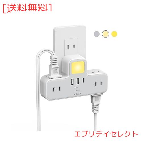 Mscien コンセント 分岐 LEDナイトライト usb コンセント 電源タップ usb付き 1個usb-c 2個usb-a 6個AC口 USB-C コンセントタップ 雷ガー