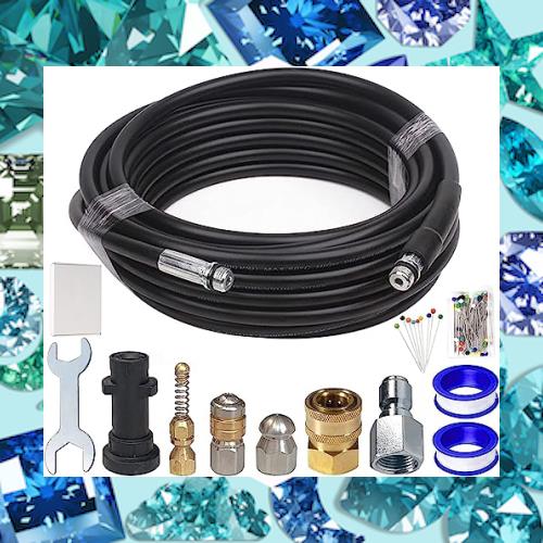 【製品パラメータ】長さ15M 内径6mm 外径12mm 重量:1.3kg 耐熱 : 60℃ 最大圧力:40MPa(5800PSI) パッケージ内容:15m延長用の高圧ホース*1、ノズル*3(逆噴射ノズル*1、ロータリー逆噴射ノズル*1、スプリング付き逆噴射ノズル*1)、レンチ*1、接続アダプター*3、 シールテープ*2、ピン*20(疎通に使用可能)