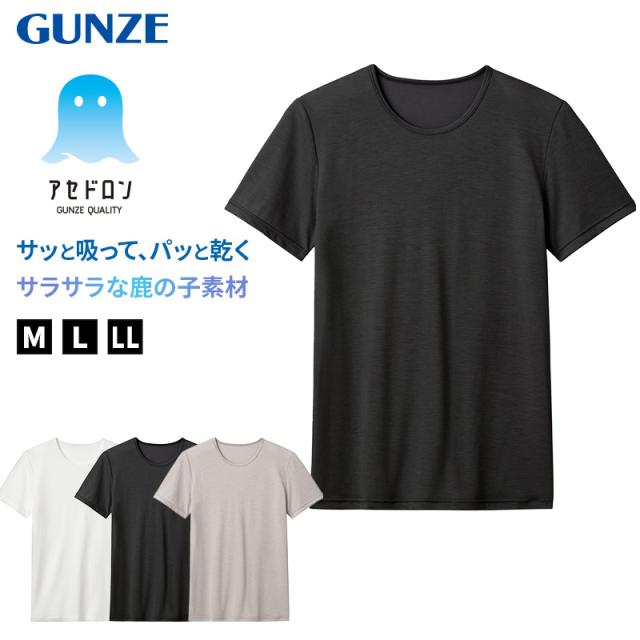 アセドロン クルーネック Tシャツ グンゼ 鹿の子 クールマジック メンズ M〜LL gunze coolmagic 吸汗速乾 消臭 丸首 半袖 シャツ 下着 肌着 インナー 夏 プレゼント ギフト 父の日