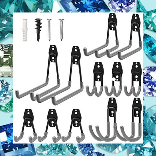 ガレージフック、12パックガレージ収納フックとハンガー、頑丈な壁掛けガレージオーガナイザー、はしご、自転車、ホースなどの道具収納 (