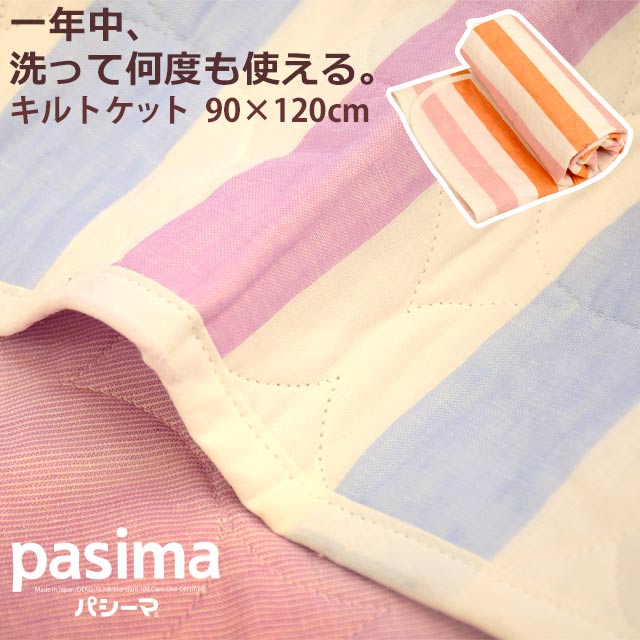 [ keyword | パシーマ 【クーポン対象外】日本製 ベビー キルトケット カラフルパシーマ 90×120cm 赤ちゃん ガーゼケット ねんね ボーダー柄 ベビー ブランケット ガーゼ ピンク ブルー ]