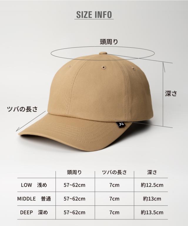 LOW:頭周り約57cm〜約62cm/高さ約12.5cm/つば約7cm