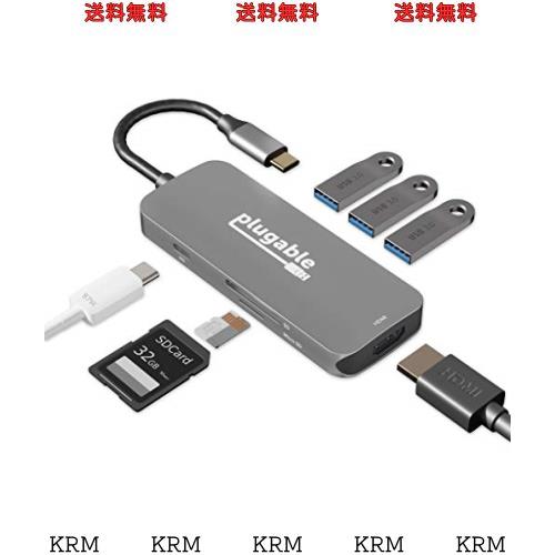 Plugable USB-C ハブ 7-in-1 マルチアダプター Windows Mac Chromebook 互換(4K HDMI、USB 3.0 ポートx3、SD/microSD カードリーダー、9