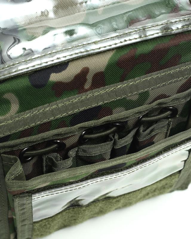 1型と3型に比べると一番の大容量のタイプです。ボディーアーマーや外被着用時でも、出し入れが簡単。メモ帳・ペン・電子タバコ・携帯電話・笛などが入ります。筆記用具入れの用途以外にも、普段は普通のポーチとしてもご使用いただけます。