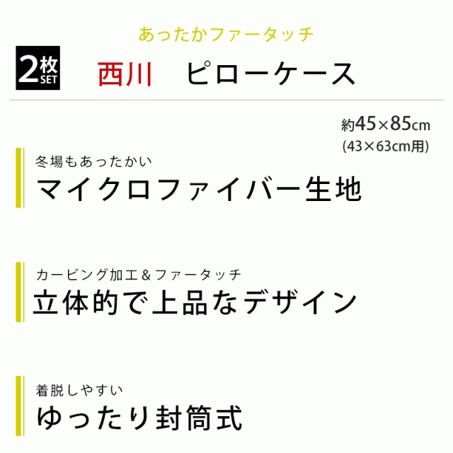 [ keyword | 【2枚組】西川 暖か ピローケース 冬用 枕カバー 封筒式 43×63cm用 43×63 商品サイズ 45×85cm あったか マイクロファイバー カバー やわらか 冬節電 ]