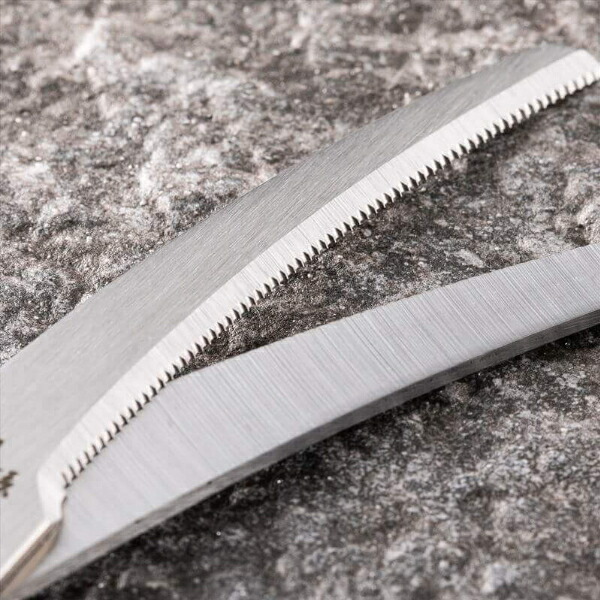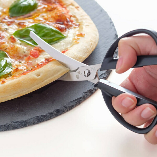 カーブしているので食材が切り易い形状のキッチン鋏包丁では切りずらい肉の脂肪などカットするのにも便利です。