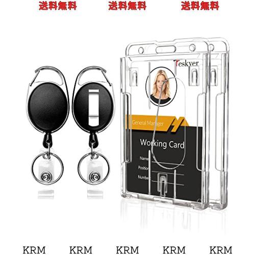Teskyer IDカードホルダー 格納式バッジリール クリップ プラスチック 透明 バッジホルダー付き クリア 硬質 ネームホルダー パスケース