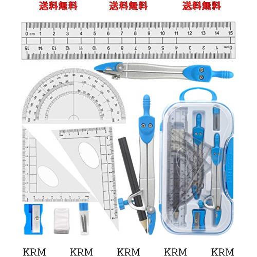 ◆商品名:Tulokaスクールコンパス 算数こんぱす12点セット15cm直定規 2pcs三角定規 半円分度器 替え芯 消しゴム 鉛筆 幾何学 中学生 小学生 文房具