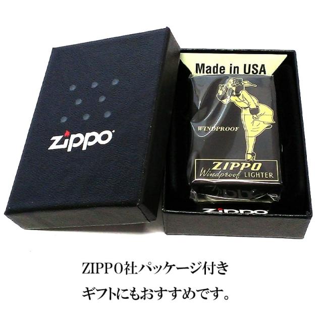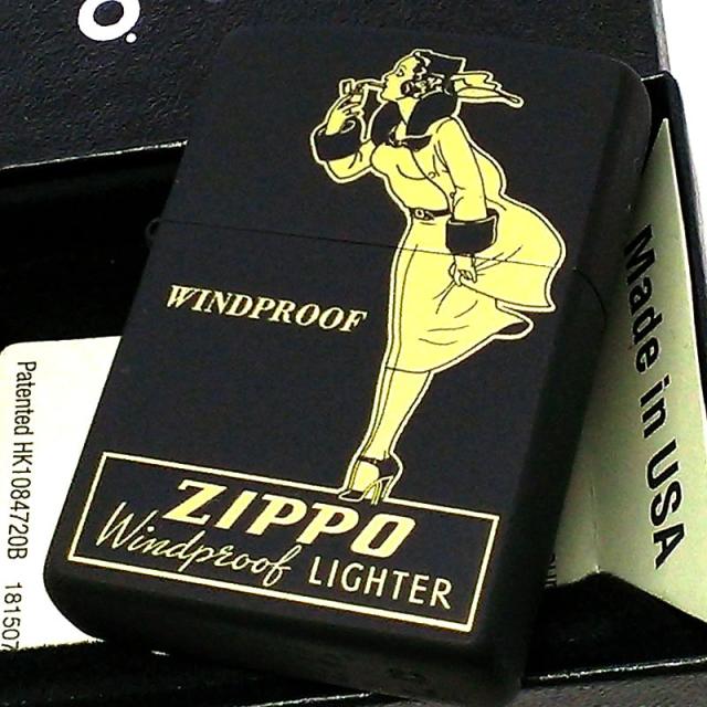 ジッポ ライター ウィンディガール 黒金 ZIPPO社広告柄 ウインドプルーフレディ マットブラック WINDY GIRL プリント 艶消し黒 かわいい