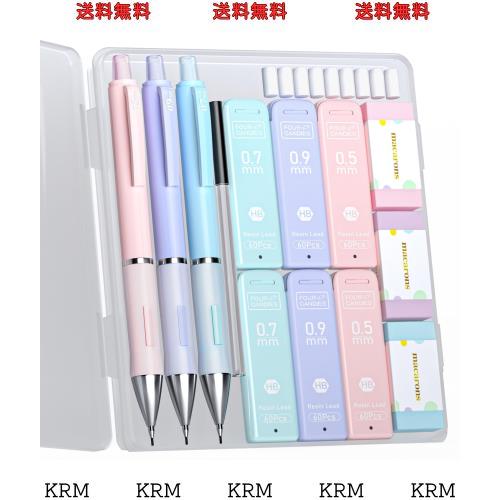 【絶妙なセット】絶妙なシャープペンシルセットが手に入ります! パステルシャープペンシル(0.5&0.7&0.9mm)3本、替え芯6本(360本)、消しゴム3本、消しゴム替え芯9本が入っています。