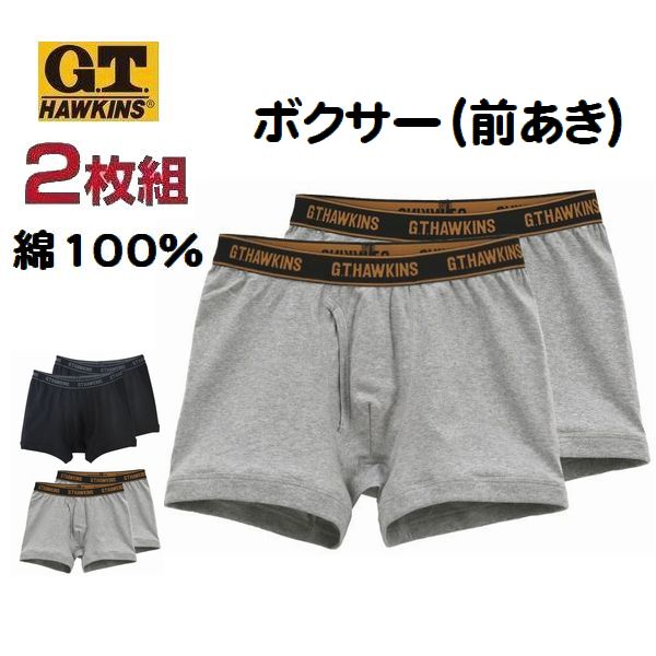 2枚組 パンツ ボクサーブリーフ ボクサーパンツ GTホーキンス 無地綿100% メンズ 紳士 インナー 肌着 下着 前あき グンゼ