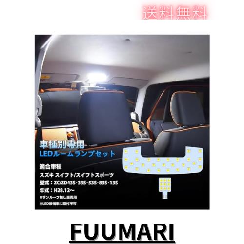 製品情報:LED ルームランプ セット 【適合車種】: スズキ スイフト/スイフトスポーツ ZC13S / ZC43S / ZC53S / ZD53S / ZC83S / ZD83S / ZC33S H28.12~ 専用、※サンルーフ無し車両用、LED装備車に取付不可。【発光カラー】ホワイト 6000K 【ルームランプセット内容】:フロントルームランプ×1、ラゲッジランプ×1、全2点。